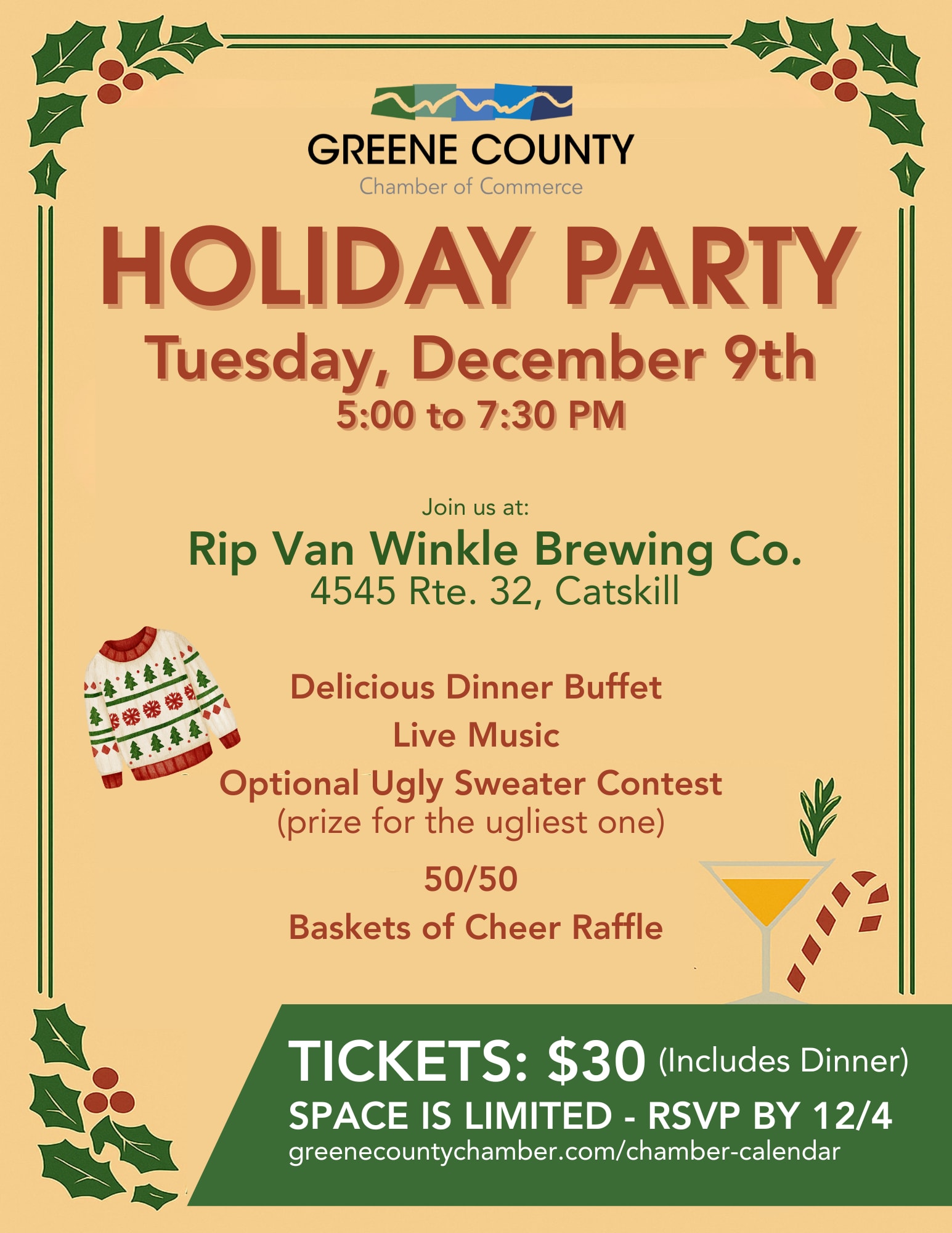 Celebrate the season with us at Rip Van Winkle Brewery. Enjoy a delicious buffet prepared just for us.