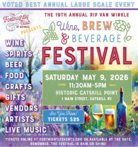 Tickets available online or at the door. To purchase tickets online, visit: https://www.fortnightlyevents.org/rip-van-winkle-wine-brew-beverage-festival/