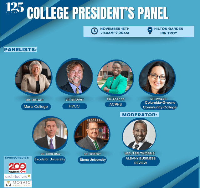 This panel will focus on how colleges and universities are adapting to meet the changing needs of students, employers, and the regional economy. Attendees will gain insights into how higher education and businesses can collaborate to prepare the next generation of professionals and strengthen our communities.